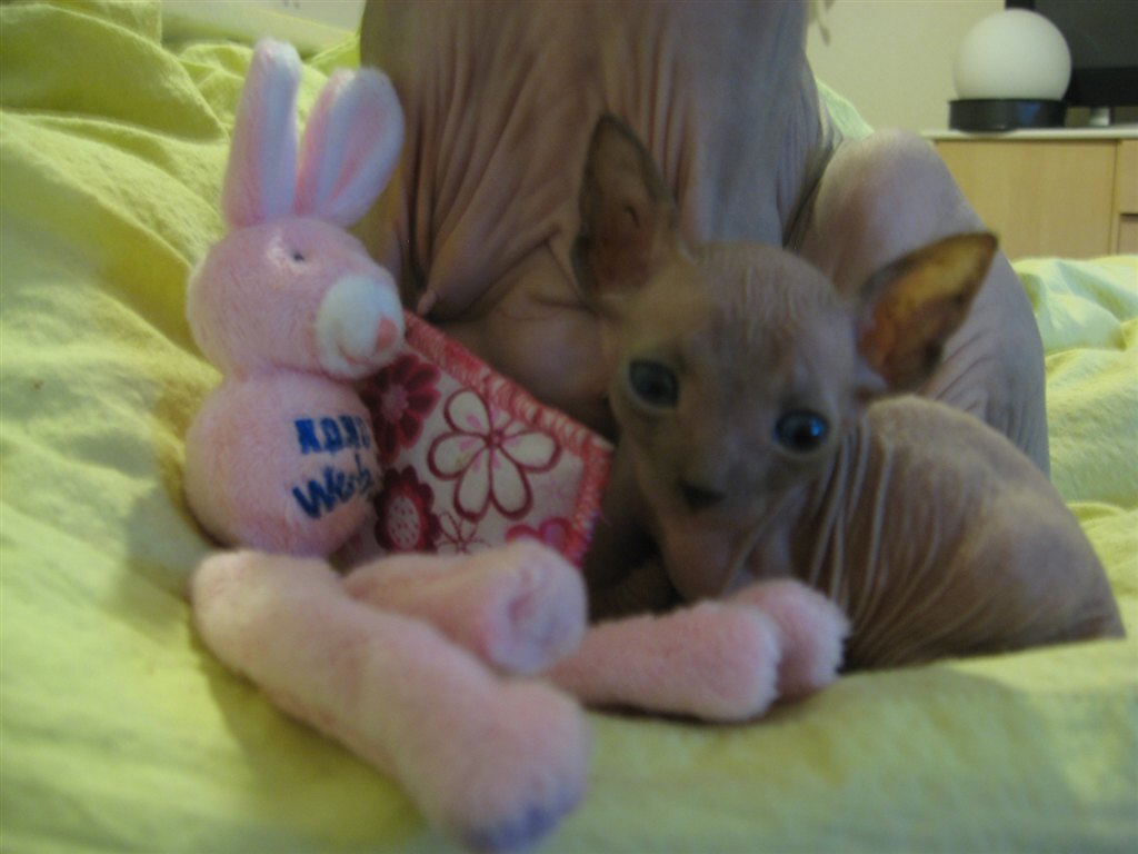 Vores far er Canadian Sphynx med de smukkeste blå øjne og vores mor er Don Sphynx og den sødeste mor i verden