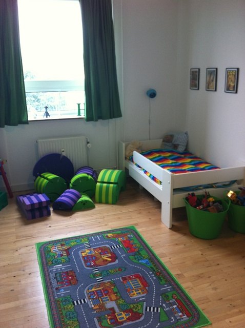 Og her er lillebrors værelse, han har arvet Emmas "babyværelse" - så der er muligvis en smule tøset på væggene, men jeg nænner ikke at male mine kreationer over