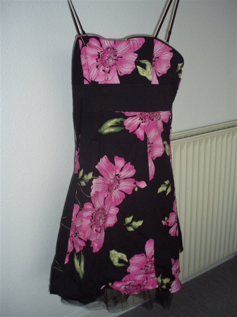 Billede 3: Flot sort kjole fra Vila, nypris 380 kr, str. L, bindes m. to flotte silkeblomster. Brugt 1 gang.