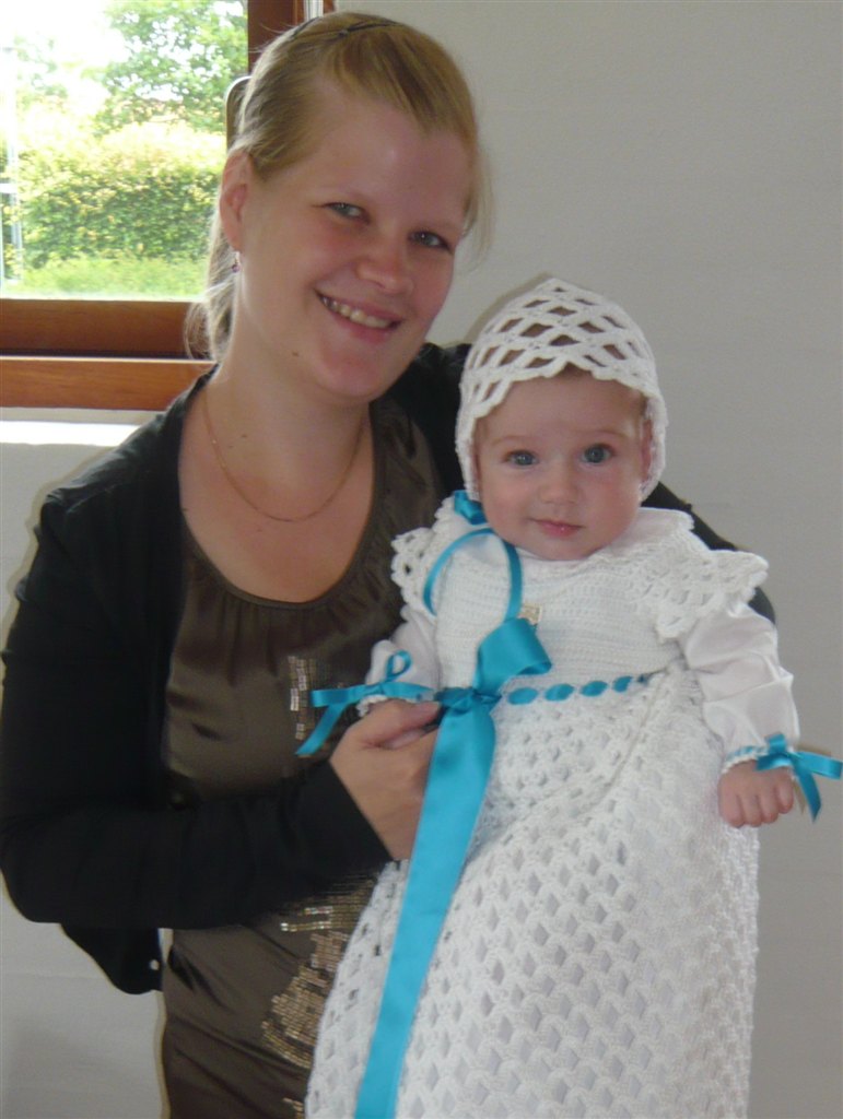 D. 3. juli blev Felix døbt, en superdejlig dag, med rimeligt vejr, god mad, glade gæster og orgelmusik!! - Shit mand, han hylede i kirken, hver gang klokkerne ringede eller orgelet spillede - tænk Jer selv til hvor mange sammenlagte minutters gråd det blev til... Faren (som selv bar) svedte tran, ligeså gjorde barnet. Jeg frøs, så så snart det "formelle" var overstået, fik jeg Felix på armen, og var således den der bare ham ud af kirken. Det var faktisk lidt hyggeligt at bytte undervejs
