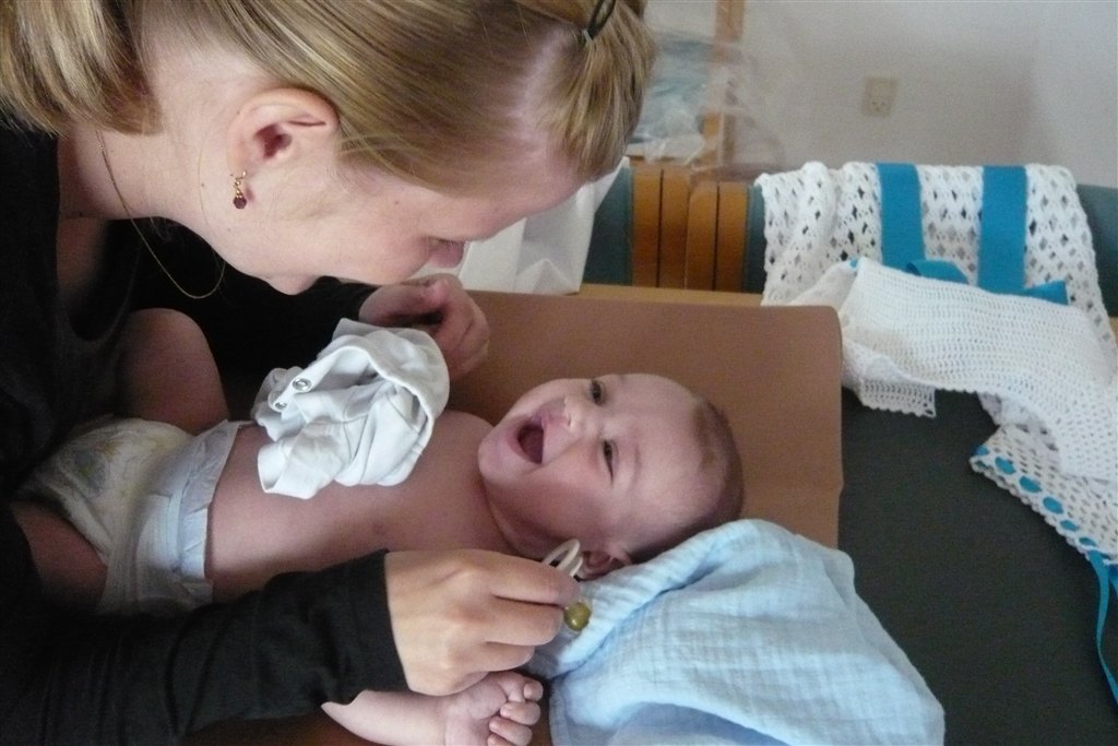 Han stak barnet, som jeg selv holdt og alt gik helt fint. Efterfølgende fik den lille lix feber og var træt og slatten. Læge-jens havde ordineret panodil ved ledsmerter og "høj" feber, så det hældte vi på barnet som derved kunne nøjes med 38,9