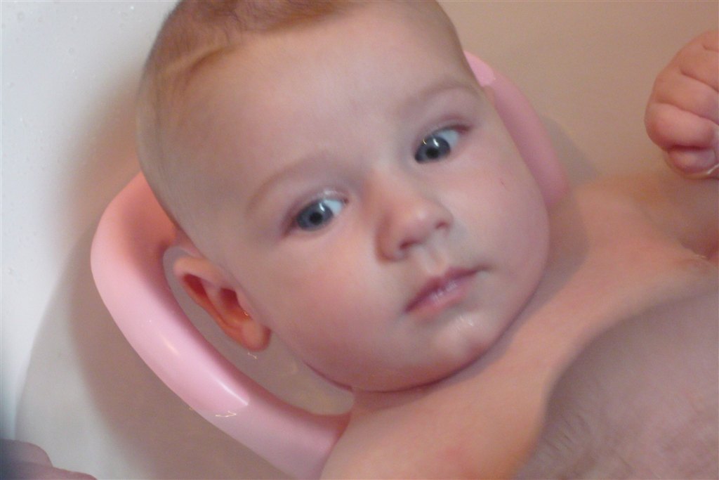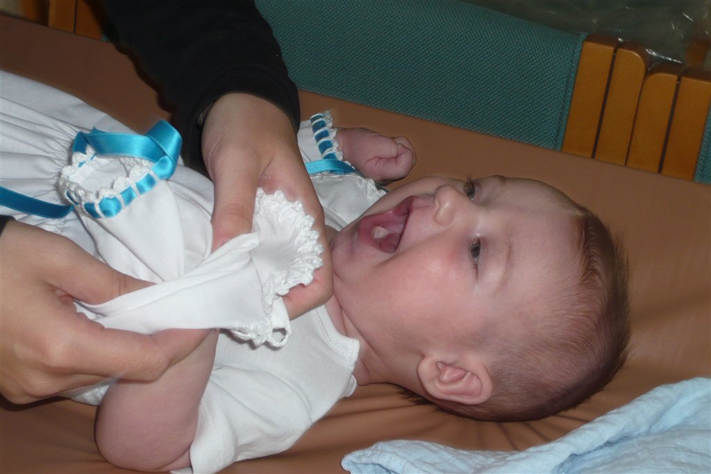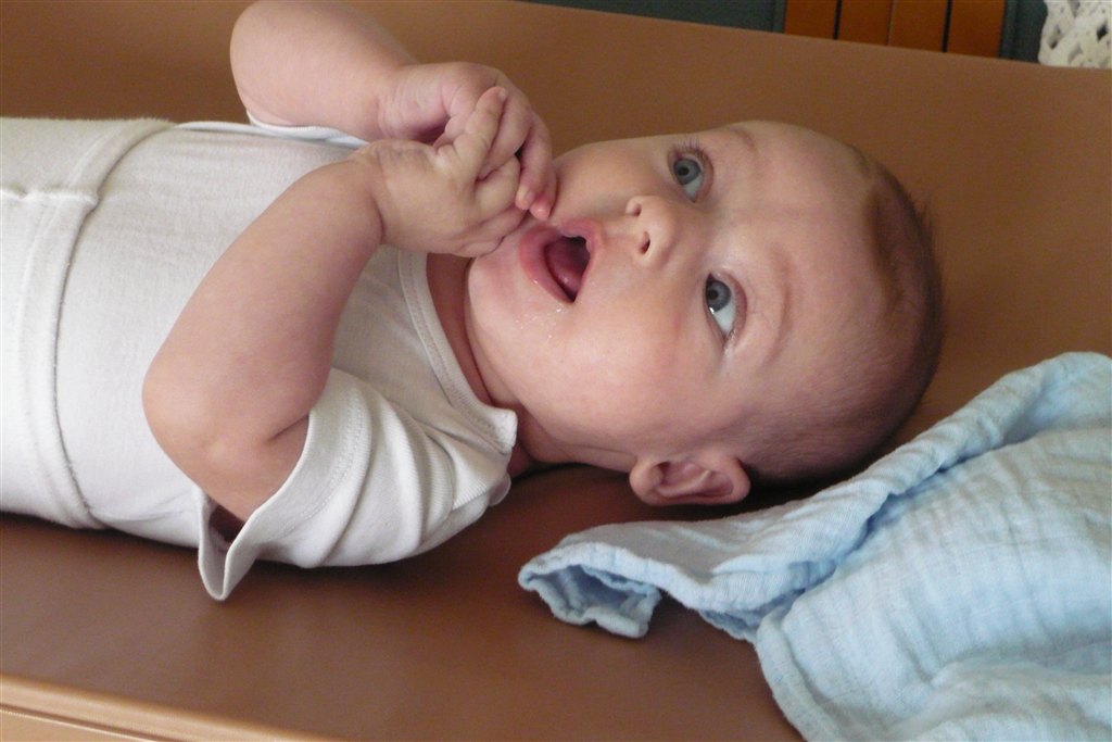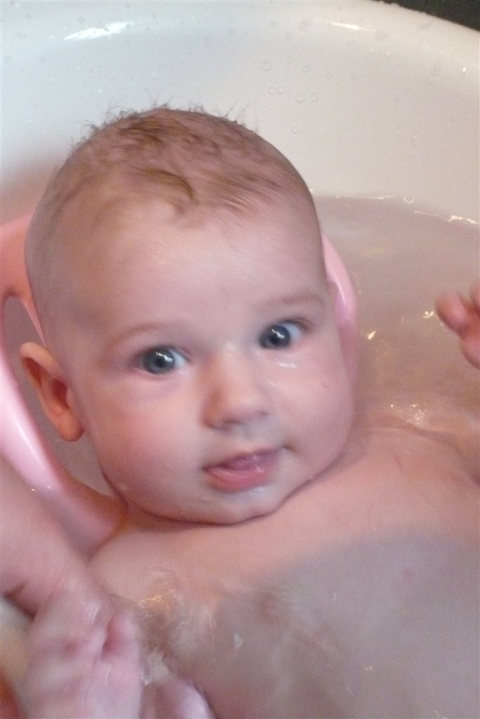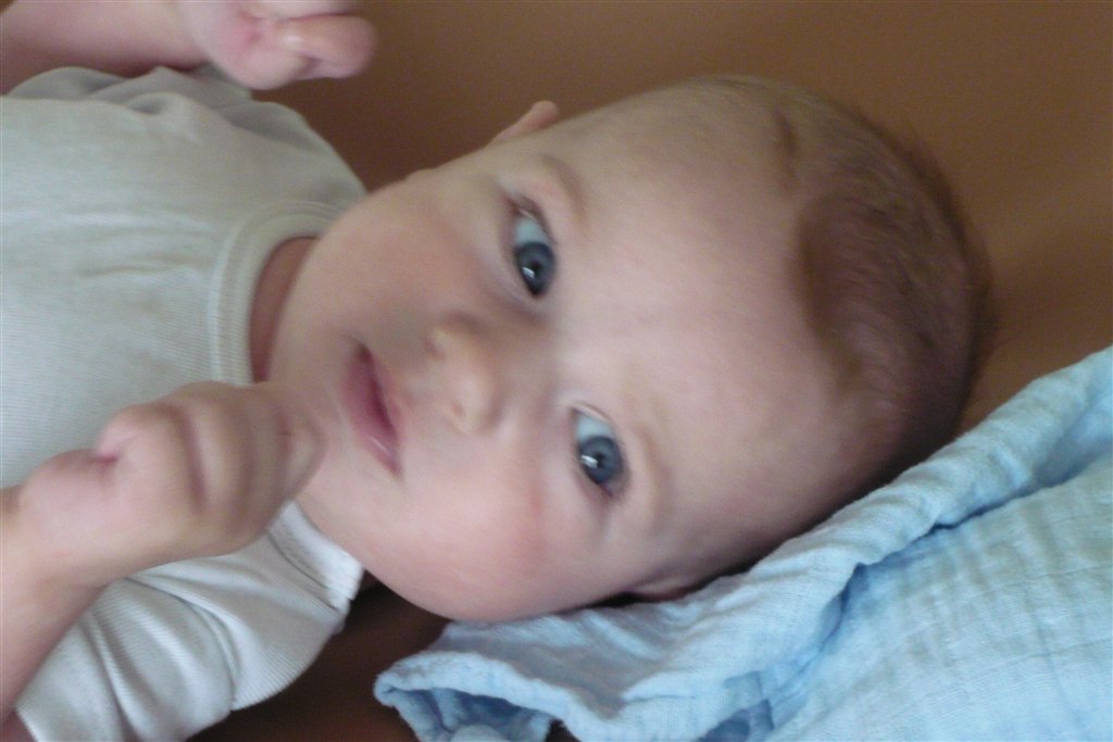 - som sidebemærkning kan nævnes, at mit pragteksemplar af en baby sover 8 timer i streg om natten, i sin egen tremmeseng, og nu også på sit eget værelse... Må man godt allerede savne den lille spæde klump som lå under ens dynes hele natten og knirkede og smaskede i søvne? Det tror jeg nok man må, når bare man husker at glæde sig over den store, lækre baby man har, som griner, raller, pludrer, hoster, nyser og snakker og ligner én stor fornøjelse samtidig!
