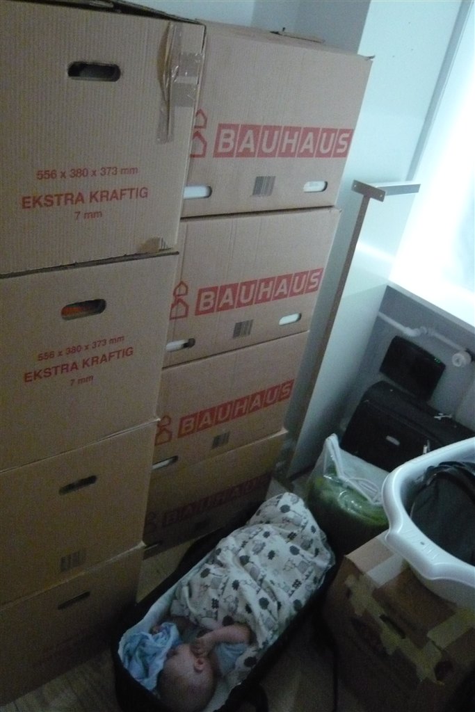 Mandag efter dåben, begyndte vi så at pakke flyttekasser. Lørdag kom min stedfar og brødre, og hjalp Jørn med at flytte. Min mor og jeg blev i vores lejlighed og passede barn samt gjorde rent. Lørdag kl. 17.30 mødtes vi alle i "vores" hus, hvor også Jørns forældre var kommet til med aftensmad. Kl. 19.30 var de alle forduftet, og udpakningen begyndte.
