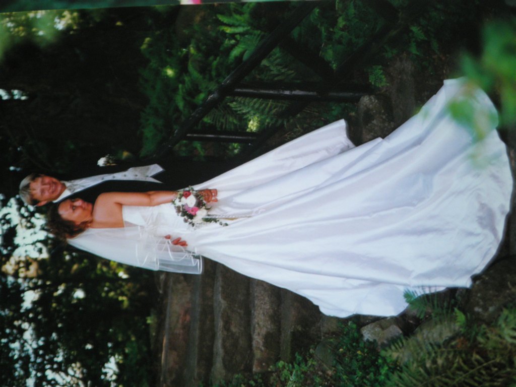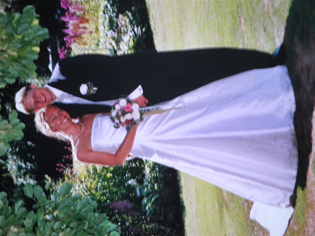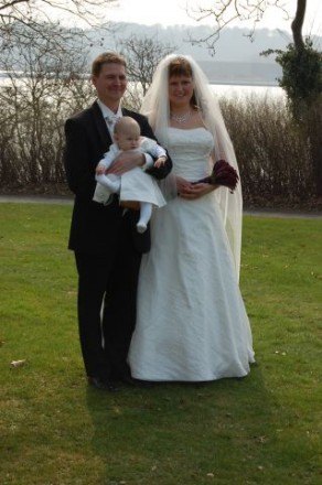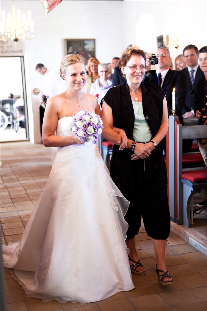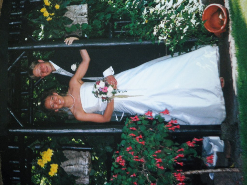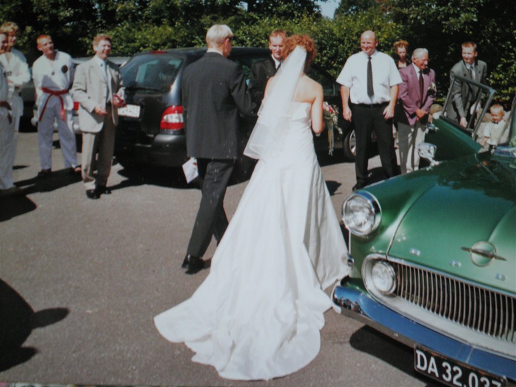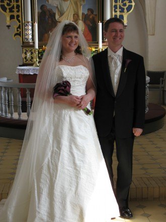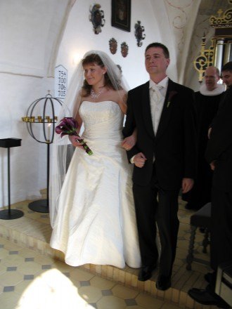 Jeg har selv syet min kjole, det var bare så hyggeligt. Vi havde et faktastisk bryllup, varmt i telt i haven, og med sommerfugle flyvende rundt i teltet. Selv Walt Disney kunne ikke have gjort det bedre