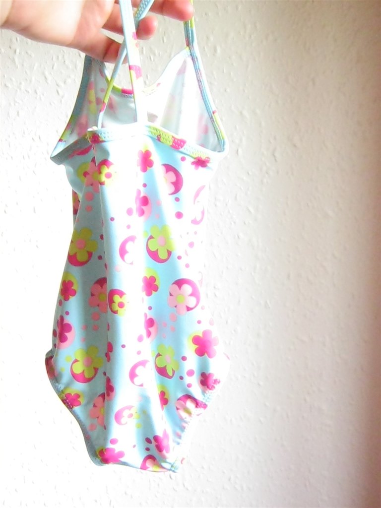 fin turkis badedragt med lyserøde og pink og grønne blomster fra name it