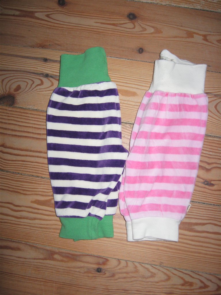 Halling velourbukser (en lille plet på hvid/lyserød par) det andet par er Grøn/lilla
