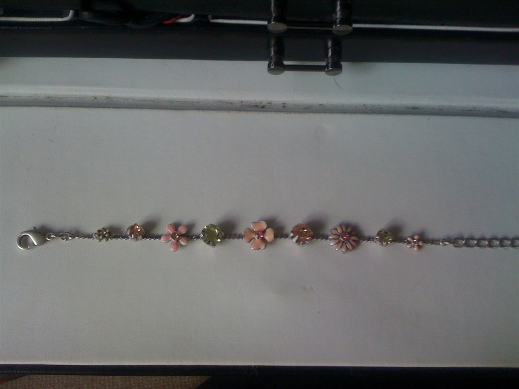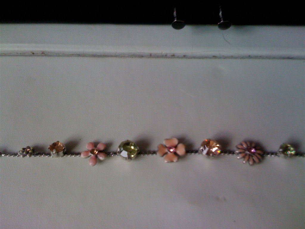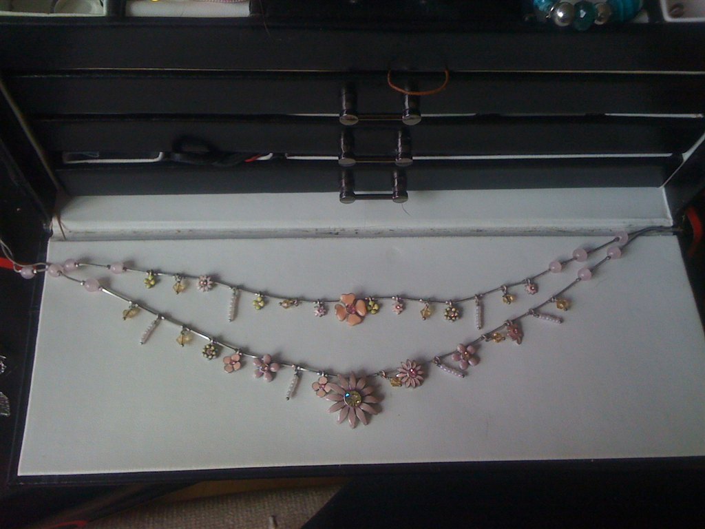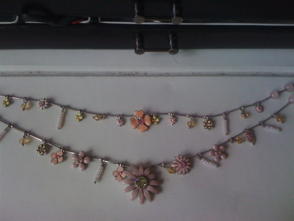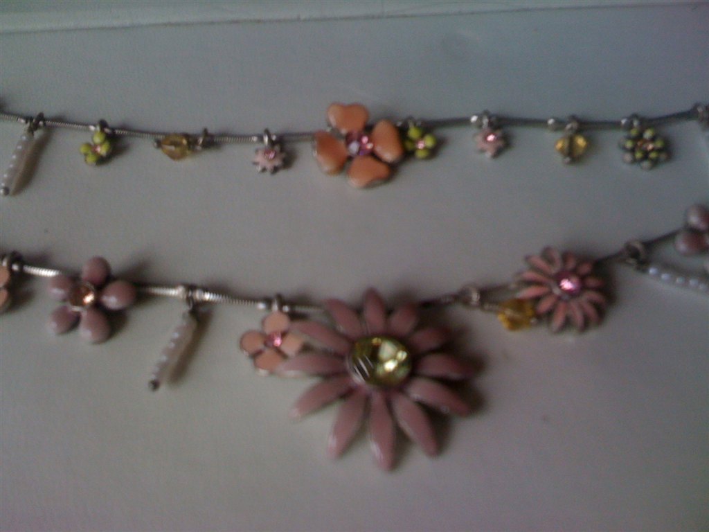 2 rækket halskæde med blomster + armbånd. Kan lukkes i flere længder
