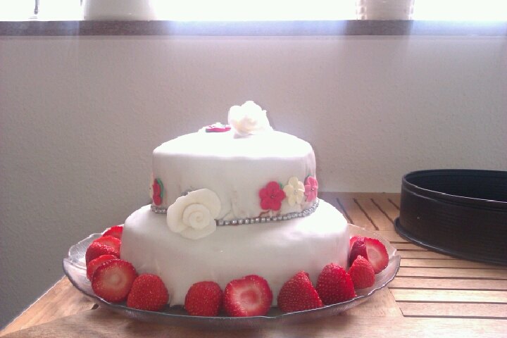 henh01 skriver: Tusind tak Jeg er også ret tilfreds når man tænker på at kagen er lavet på 2 timer og jeg løb tør for fondant så måtte lappe lidt her og der.