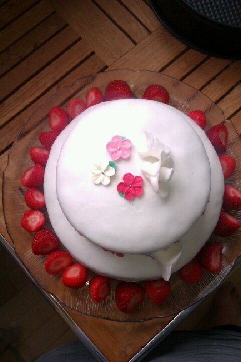 Jeg er også ret tilfreds når man tænker på at kagen er lavet på 2 timer og jeg løb tør for fondant så måtte lappe lidt her og der.