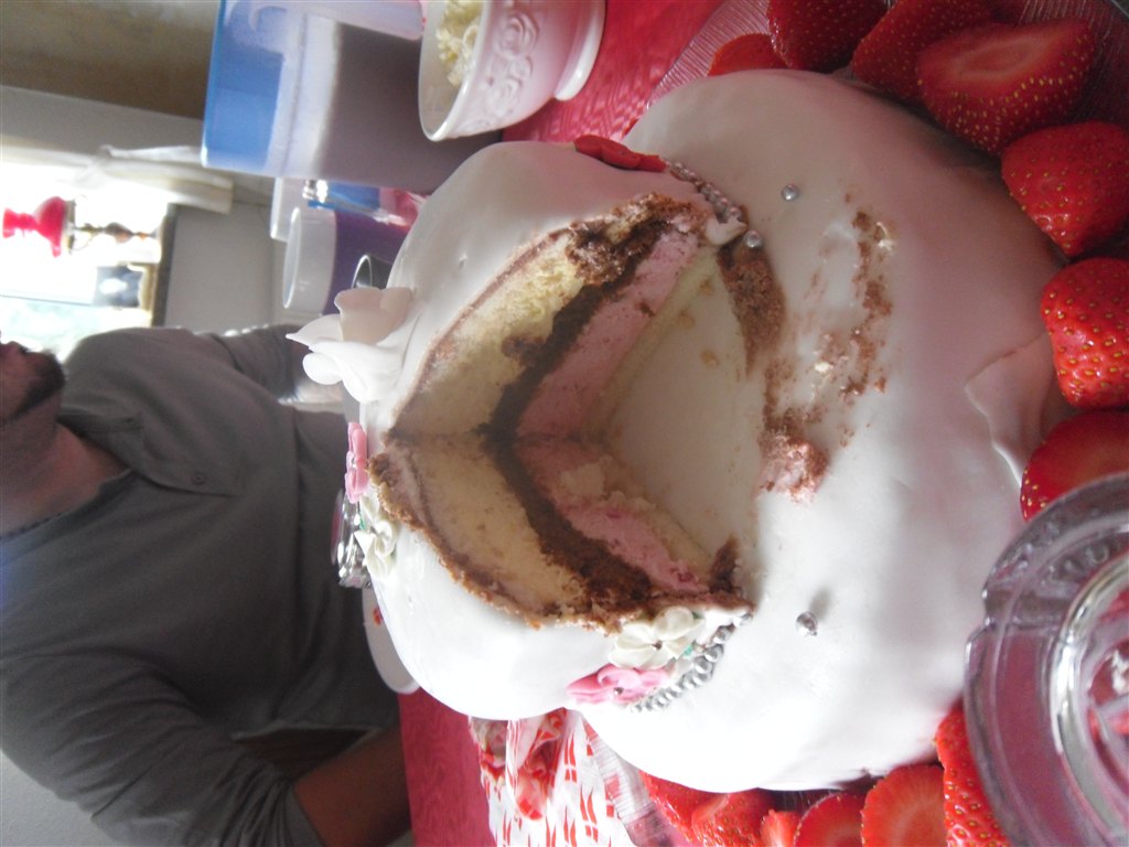 Lavet ifb med min datters fødselsdag. Der er hvid chokolade fromage, hindbær fromage i smurt op med chokoladesmørcreme.