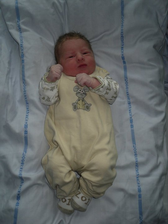 Som overskriften siger så kom vores søn til verden den 21.7.2011 kl 16:18. Han var 54 cm lang og vejede 3490 gram. Og ligger lige et billede med ind af ham (: