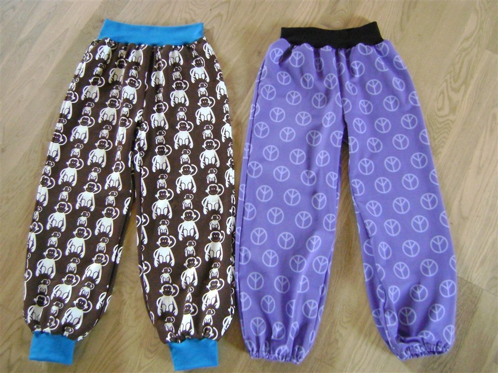 Bukserne laves med ribkant i talje og elastik ved benene.