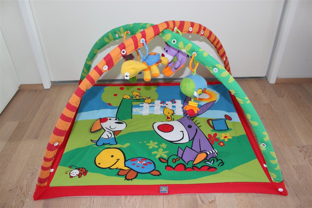 Aktivitetstæppe fra Tiny Love. Velholdt og i pæn stand!! Farverne er stadigvæk helt klare! Original bærepose medfølger. Fra ikke ryger og dyrfri hjem!