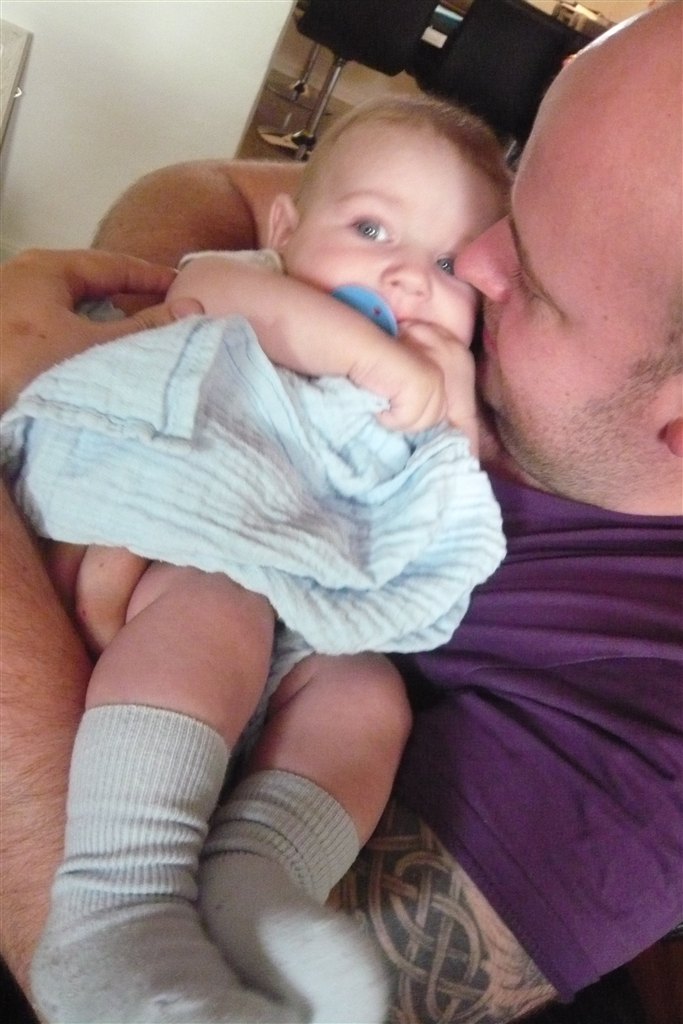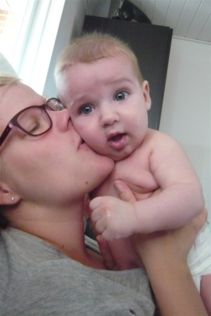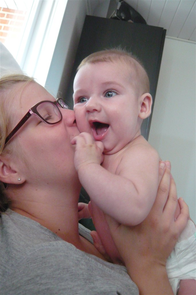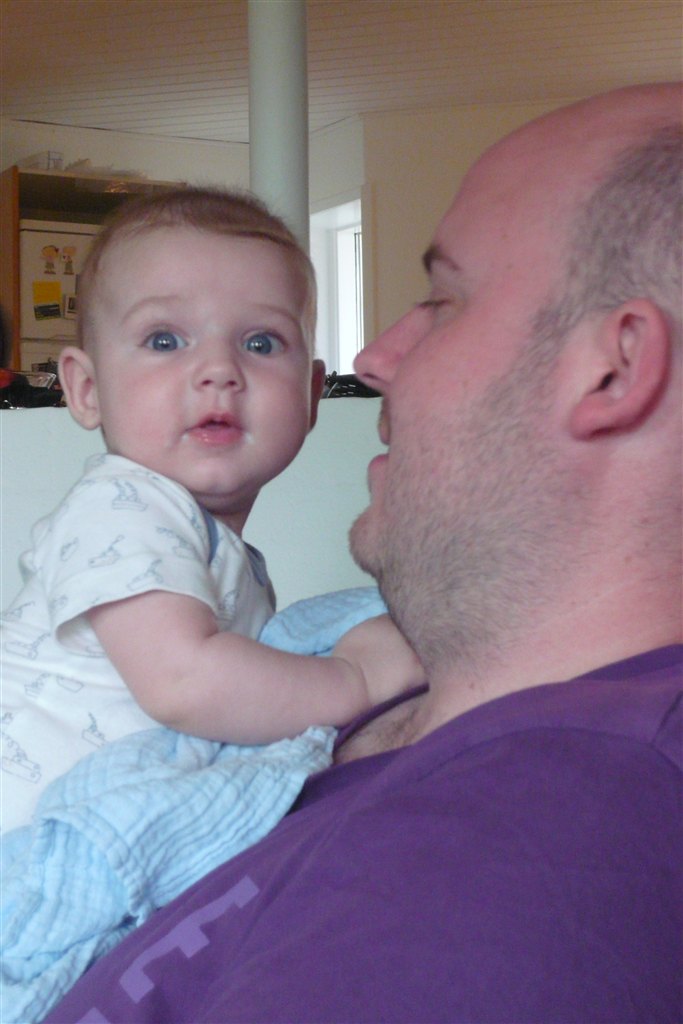 Felix bliver større og dejligere for hvert minut føles det som, og er nu 69,5 cm lang og vejer 7,5 kg... Synes godt nok også han var blevet lidt tung at slæbe på...