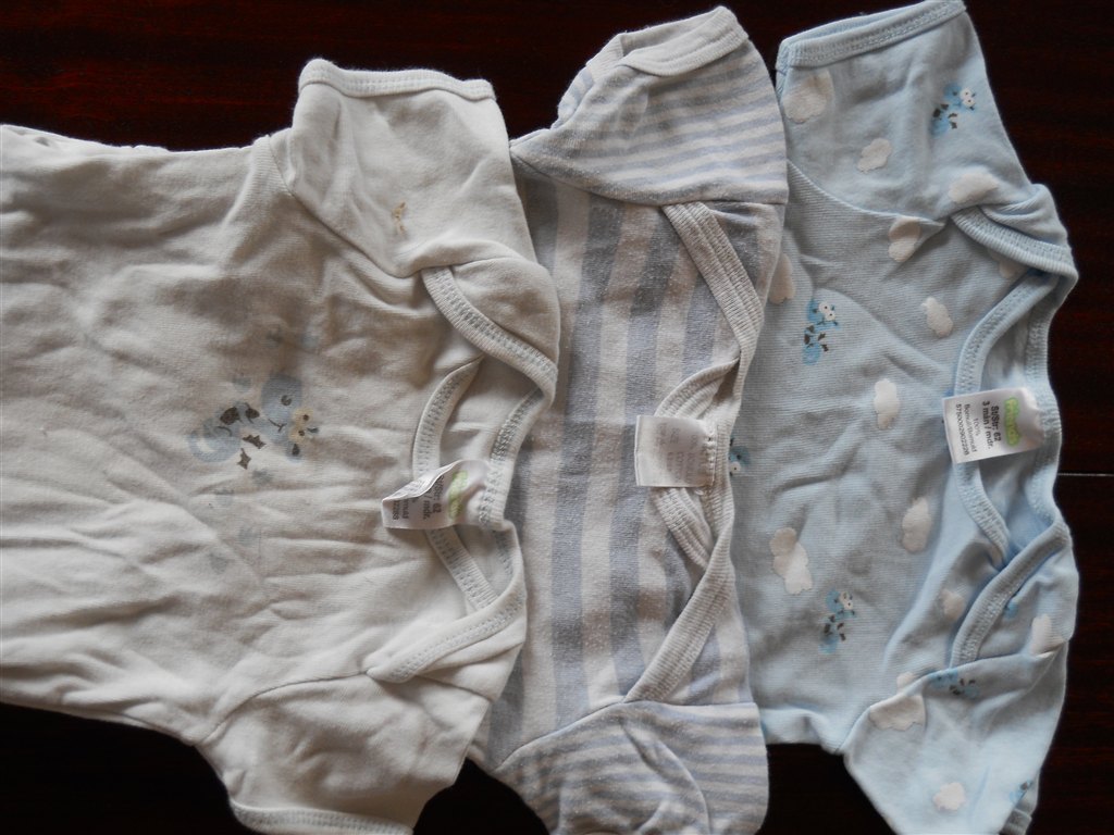 2 heldragter uden ærmer med fødder i, og 1 uden ærmer og uden fødder