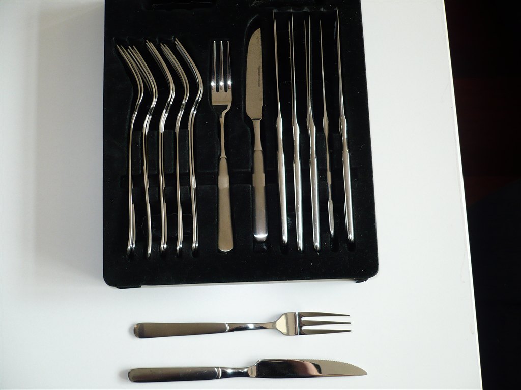 Her er nogle ting vi lige så godt kan sælge, da vi aldrig bruger dem. Knive og gaflerne bruger vi ikke pga. der ingen skeer er til, så de er aldrig brugt, et rigtigt fejlkøb, da jeg syntes de var pæne og lå godt i hånden, men ønsker et fuldt sæt.