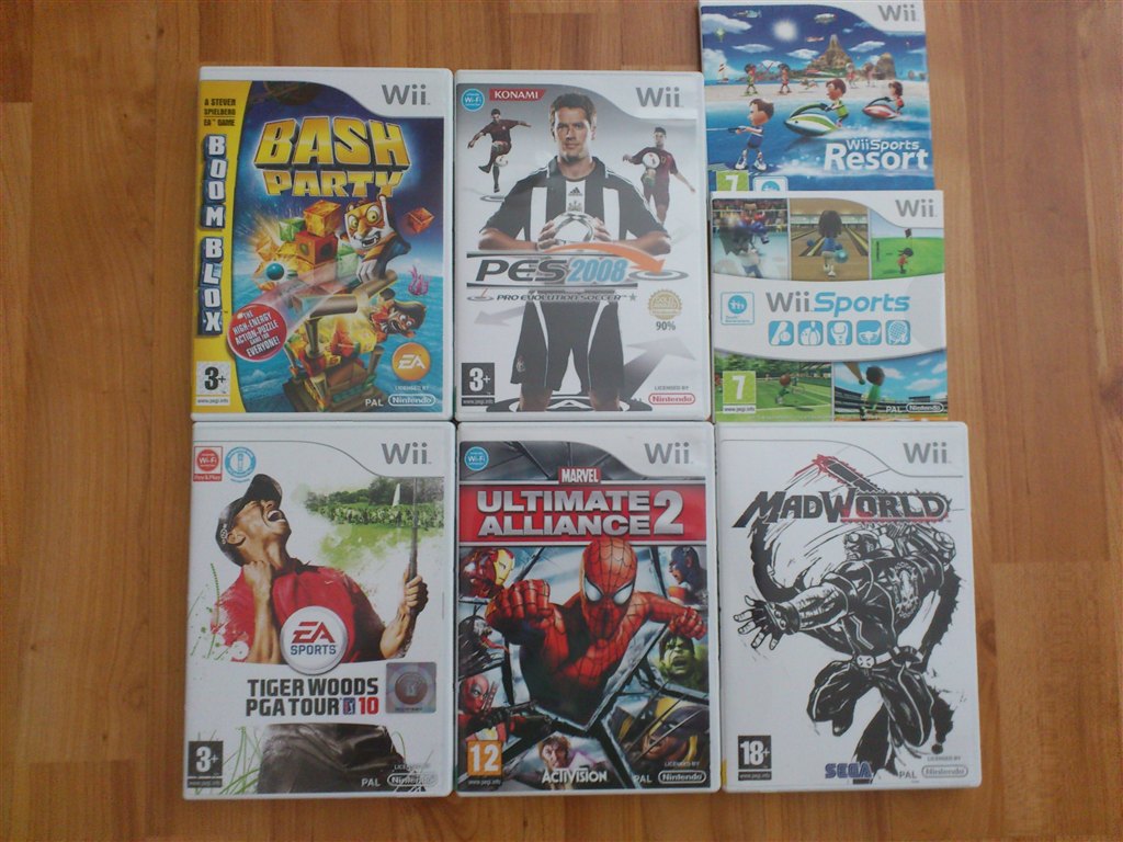Der følger nogle spil med også der til. Der er kun en controller og nunchuck, da vi aldrig har fået købt flere.