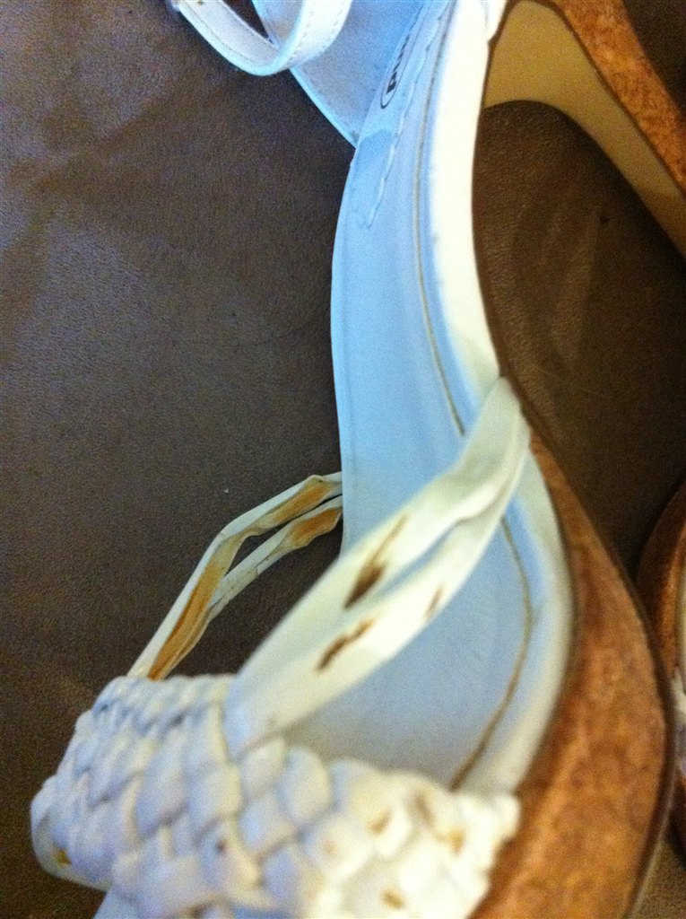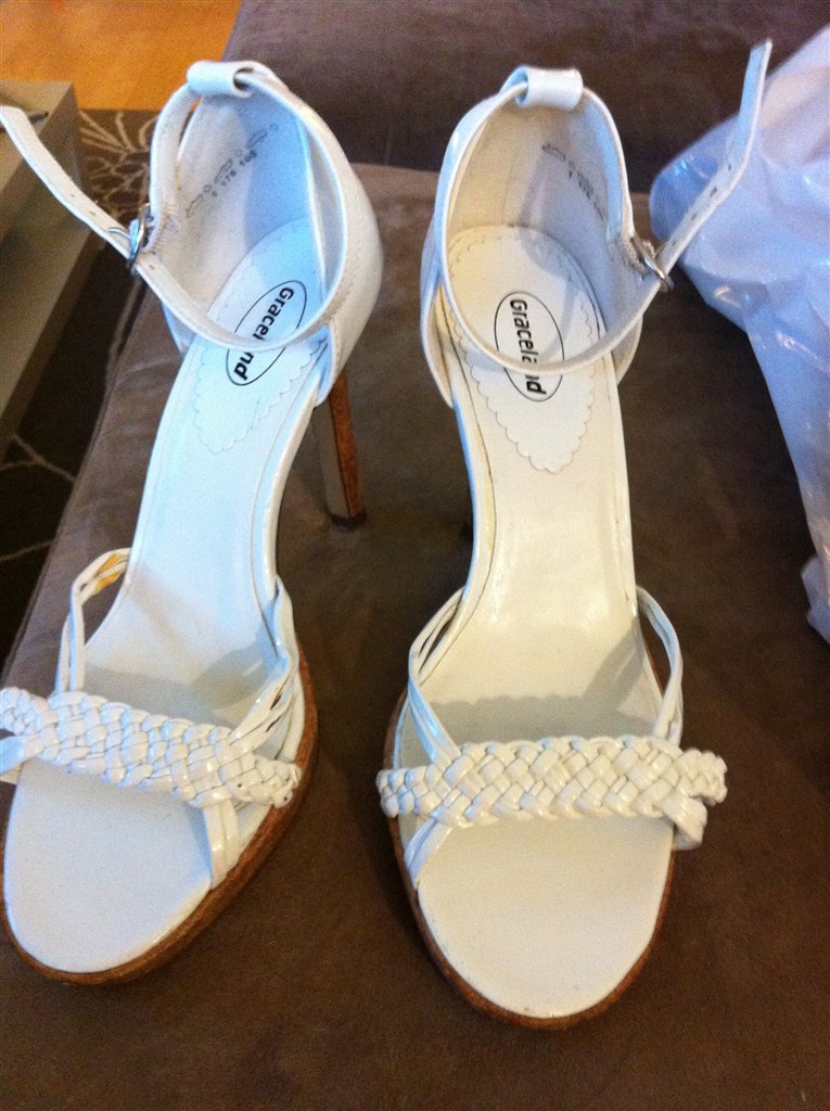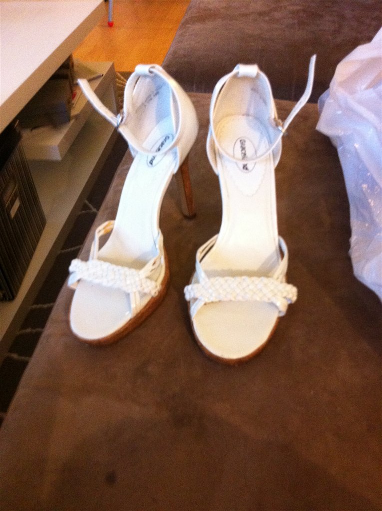 Disse hvide stiletter aner jeg ikke hvor jeg har købt og nypris, de sælges dog kun for 100kr, inkl. porto, da der er et lille slidmærke på, det er på højre sko, ude i siden, det kan ses på billedet