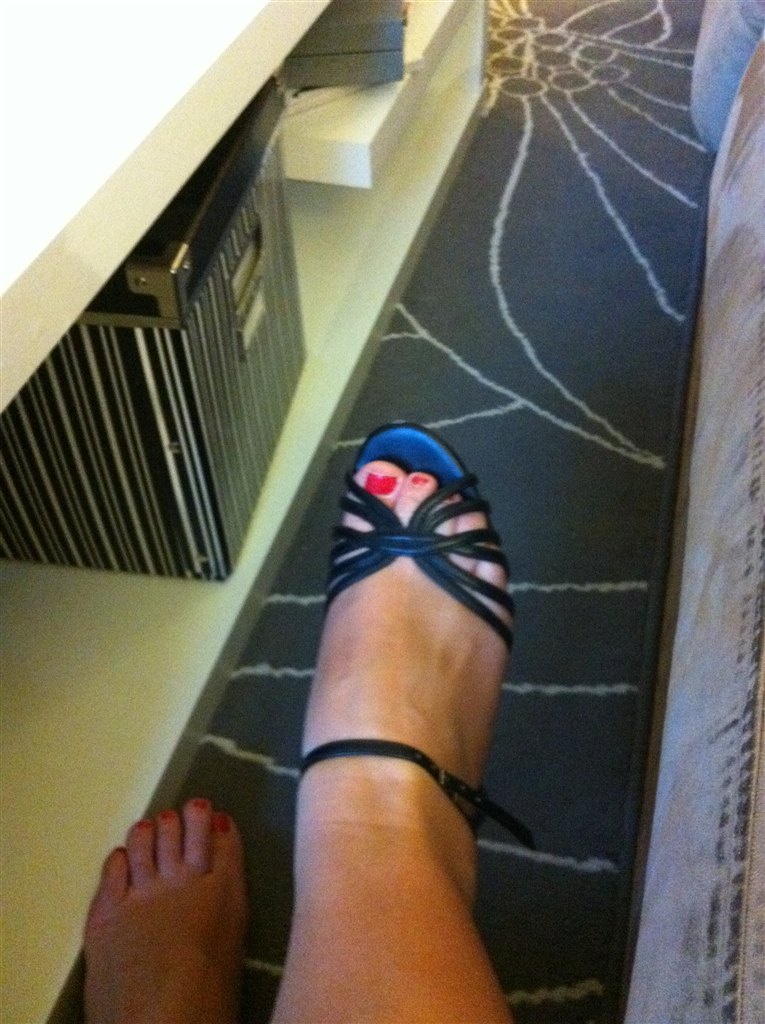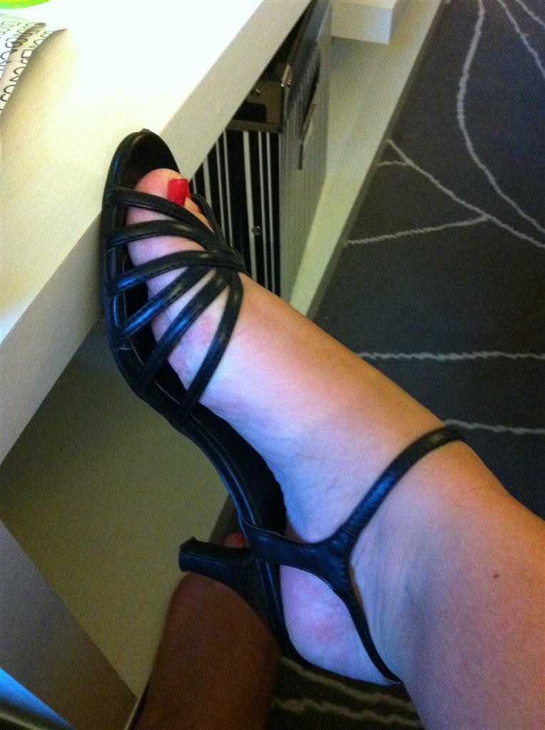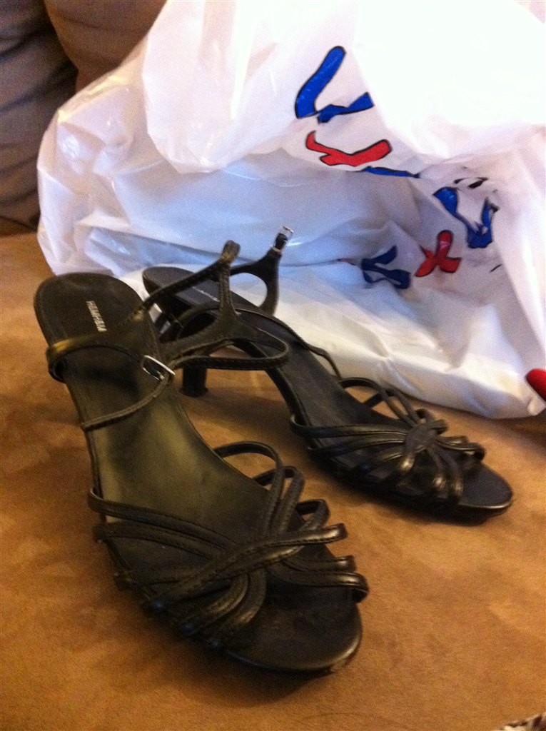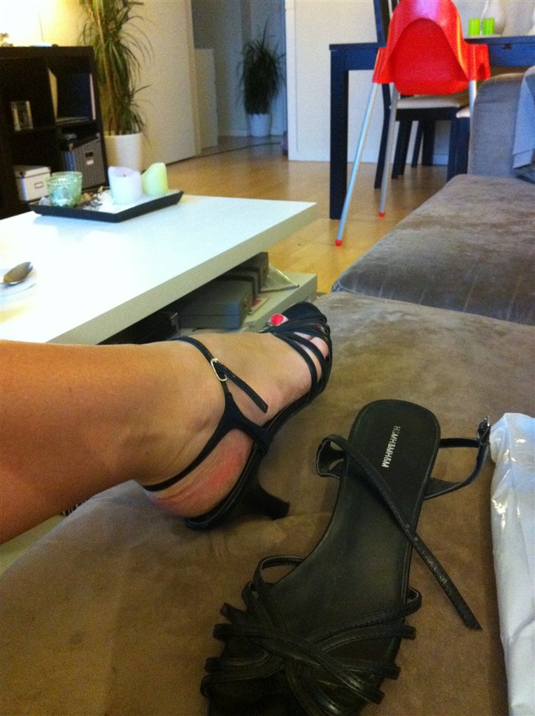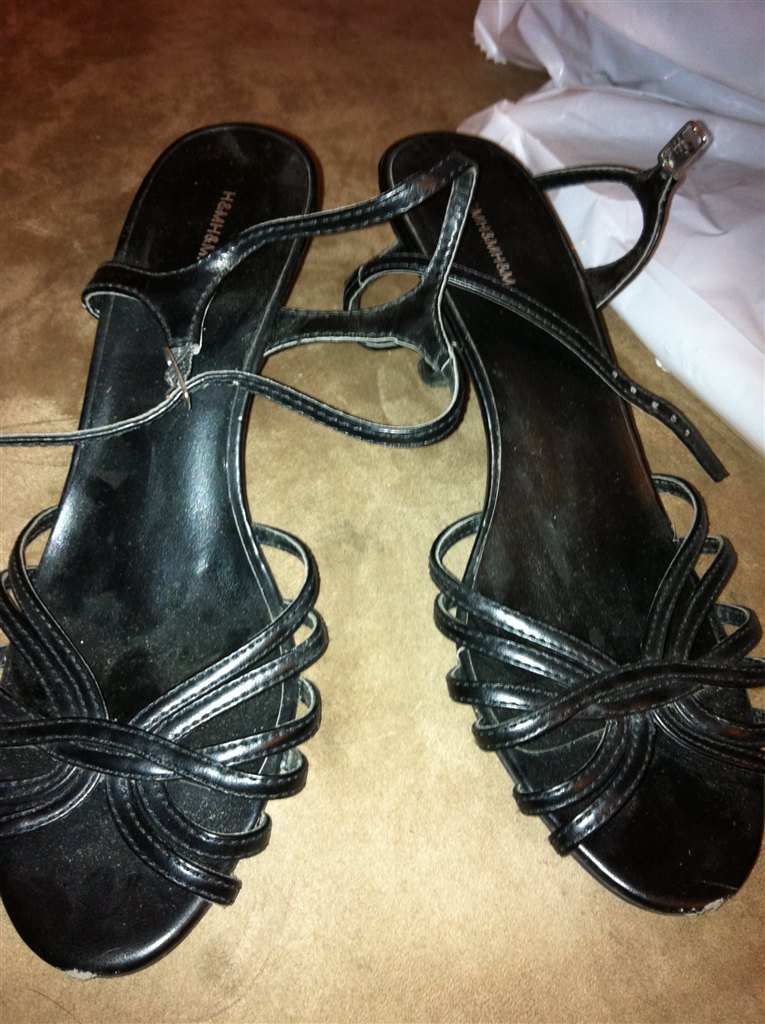 Sorte stilletter med rem om ankelen De er fra H&M, og prisen er 100kr inkl. porto