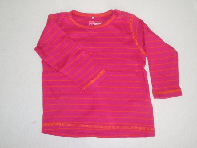 SOLGTBILLEDE 7Vendbar trøje/kort kjoleDen ene side er orange og hvidstribet, den anden side er lilla og hvidstribetStr 80-86 cirka...der står ikk str i, men tager gerne mål, hvis der er interesse.