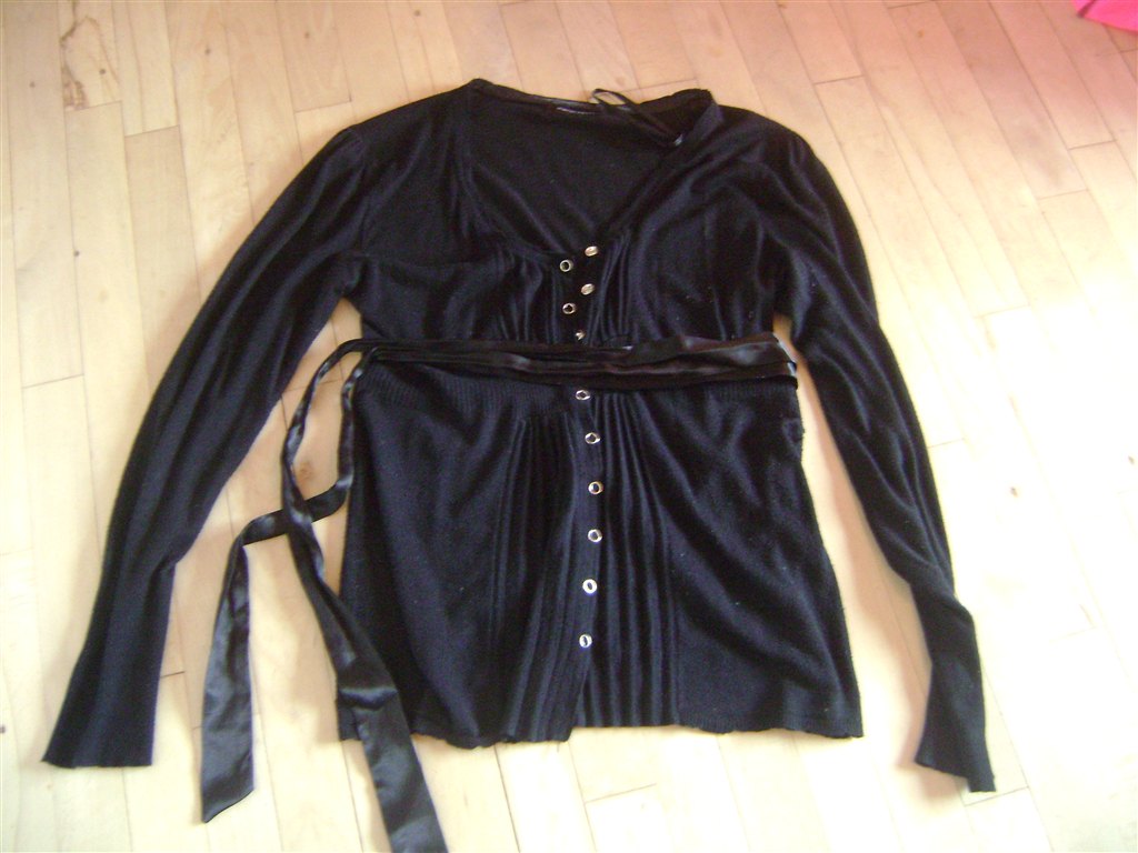 Sort bluse med knapper og bindebånd. Brugt meget. Pris 60 incl