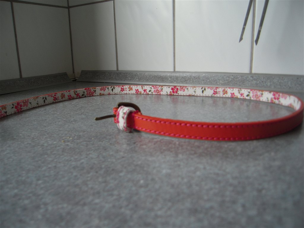 4. Bælte med blomster, aldrig brugt, måler 1 meter, nypris 149 kr, nu 75kr