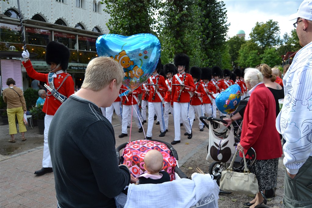 , så Alberte måtte nøjes med amning og frugtmos, som egentlig var til dessert. Hun fik dog lidt af farmors fisk, hvilket var et hit. Men det var en god dag, der startede med regn, men så blev det bare super vejr og vi fik set Tivoligarden og Tivoli Big band.