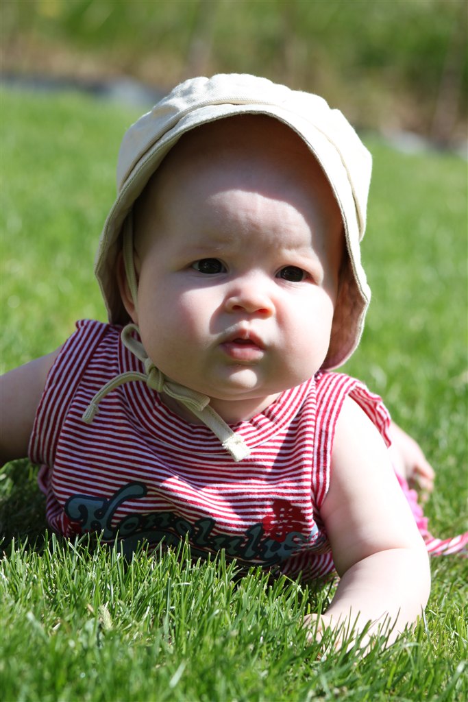 Hun er et meget mildt væsen og elsker at ligge og lege selv. Hun er blevet meget bedre til ”fremmede” og farmor og farfar har nu passet en aften, så vi kunne tage i biffen. Der var ingen problemer. Hun er på det område en helt anden baby, der ikke græder med det samme en ”fremmed” stikker sit ansigt op i hovedet på hende. Det har resulteret i, at vi har været i Tivoli og på travbanen med bebsen og det gik bare så godt. Vi var inviteret i Tivoli af oldemor, som fejrede hendes 93 års fødselsdag. Jeg kunne dog ikke få kogt vand til grød på restauranten (!!!)