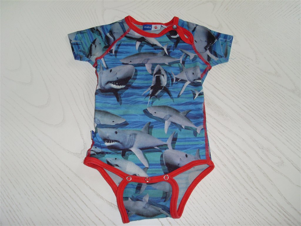billed 1: Molo kort ærmet body str 80 med haj motiv sælges. har den også i lang ærmet