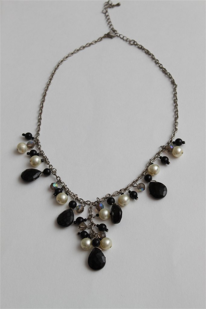 Billede 3: Halskæde med sorte og hvide perler primært.