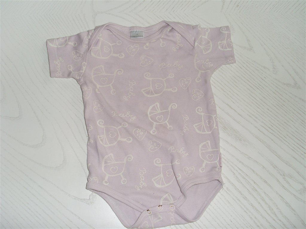 billed 2: svag lyserød kort ærmet body tryk på. str 86 (lille str)