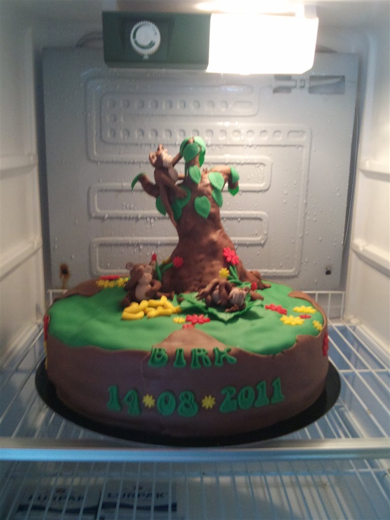 Susanne(bavianis) har lige hentet Birk´s dåbskage.
