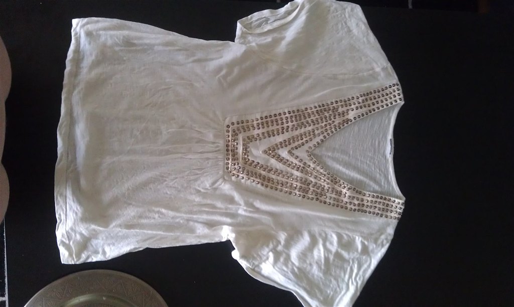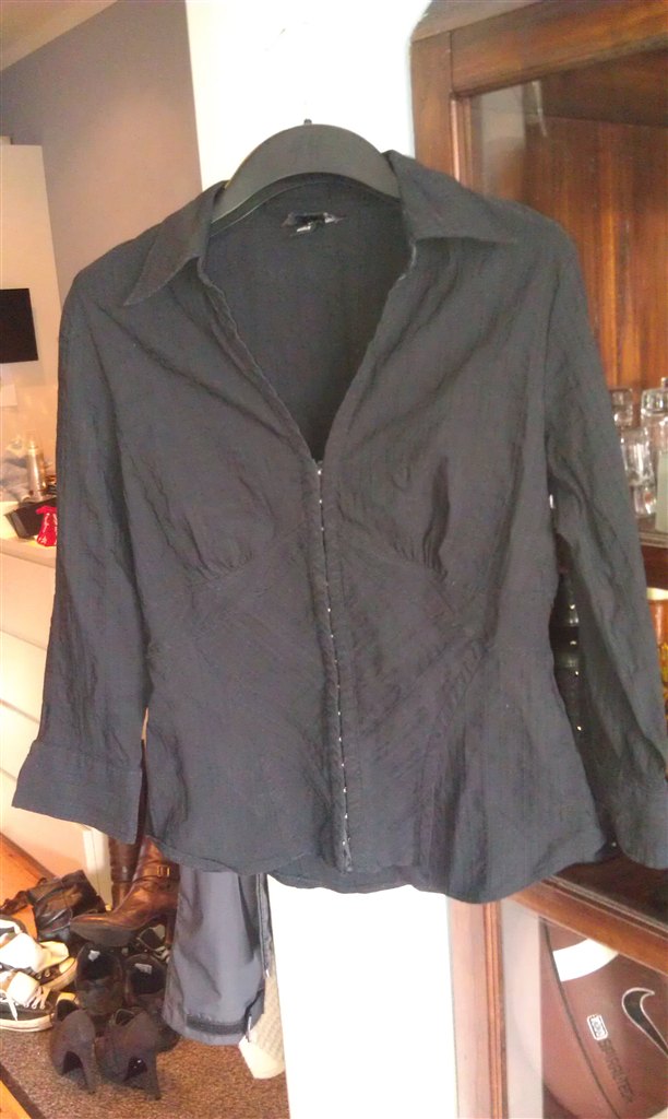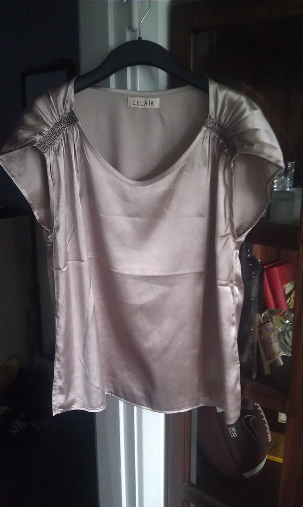 - Trøje "Celaia" Det er vist en 38-40.. Den er spritny, og mærket har jeg stadig liggende sammen med ekstra palietter... Det er satin..