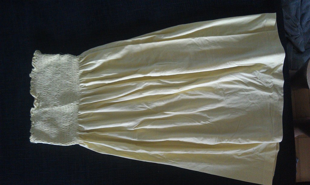 - Gul kjole fra vistnok only.. Har klippet mærket af.. Der følger to stropper med til at sætte i.. Den er en M men kan give sig meget..