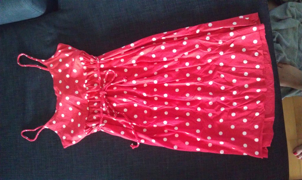- Rød kjole fra Milla.. Fik den i gave af en veninde fordi jeg har et par sko med samme mønster.. Men kjolen er ikk lige mig.. Den er helt ny og sidder faktisk utroligt flot på kroppen.. Flettede stropper og snor om livet..