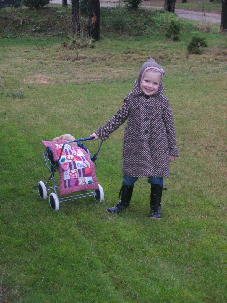 Og forresten så går den endnu længere ned på ryggen end foran på brystet, så man bliver ikke bar i nakke og hals. Kanon især fordi at det kan være svært at lyne jakkerne helt op, idet ungerne ligesom ikke har nogen hals. Så sidder lynlåskanten/jakkekanten lige i munden på ungen.