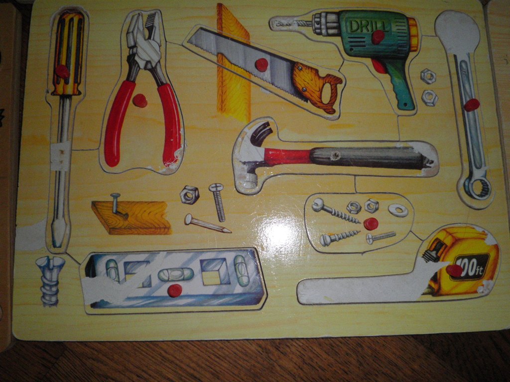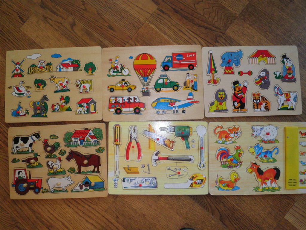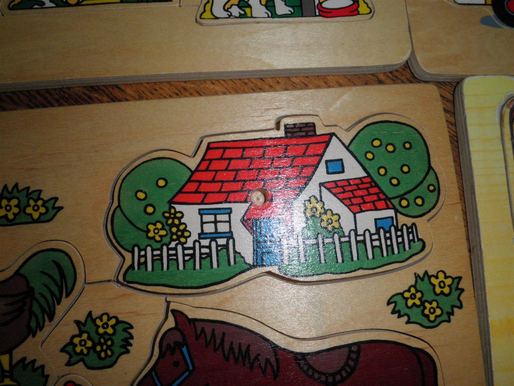 Maja gider ikke at lægge dem mere, så nu sælger vi dem. Den ene, den med værktøjet er papiret gået af nogle af dem (se billede). Og så mangler der en dup på bondegården (se billede)