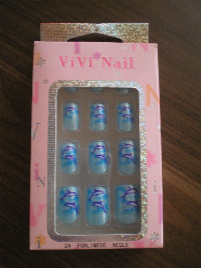 Med motiver på. Den ene med delfiner og de andre med blomster og "perler".