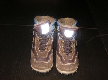 1 par vinterstøvler, forskellig farve grøn, str. 21 i mrk. Ecco. Med velcrolukning. På den venstre støvle ses en lidt slidt næse, ellers super støvler. Nypris 499,-. Prisidé 100,-.