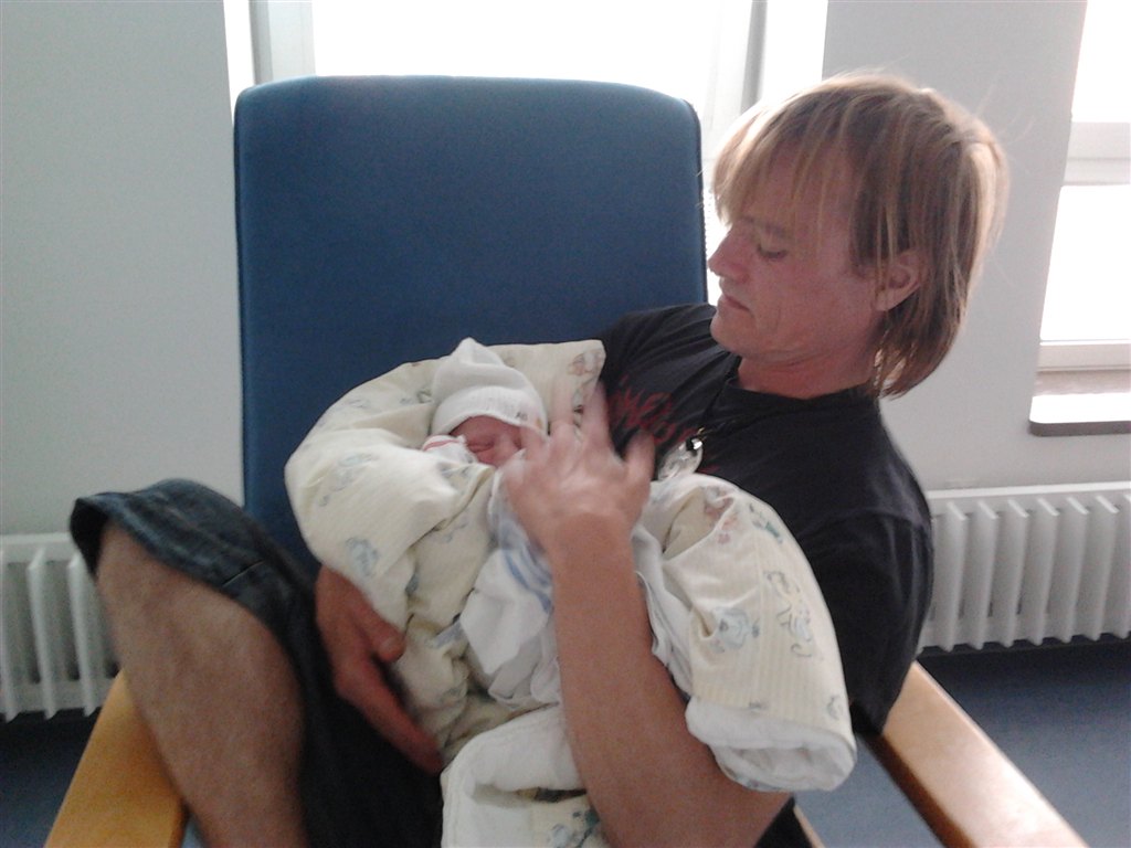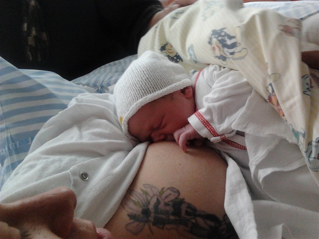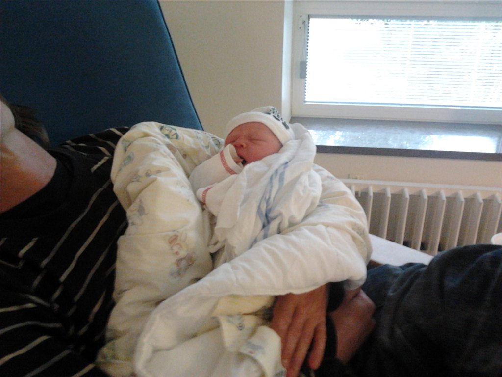 kl 12 35 blev han født. 3220 g og 50 cm og helt perfekt