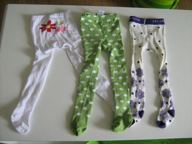 1. Strømpebukser i str. 80/. Der står 74/80 i de to par men jeg synes de er lange. To par fra Ellos og et par fra Melton.
