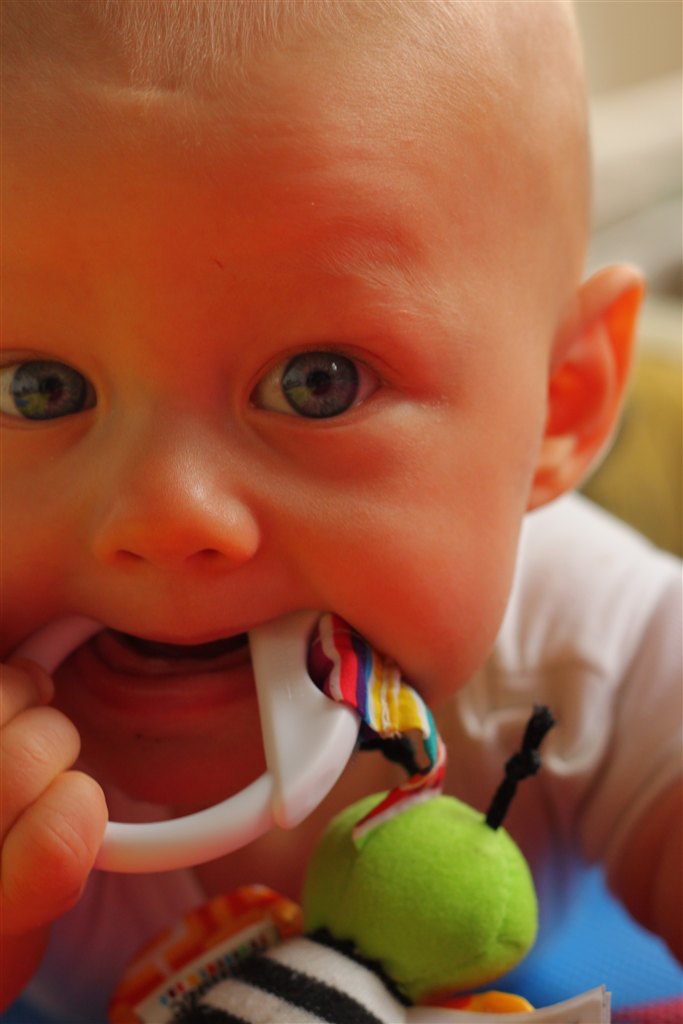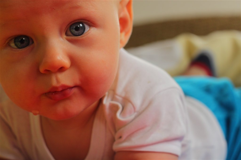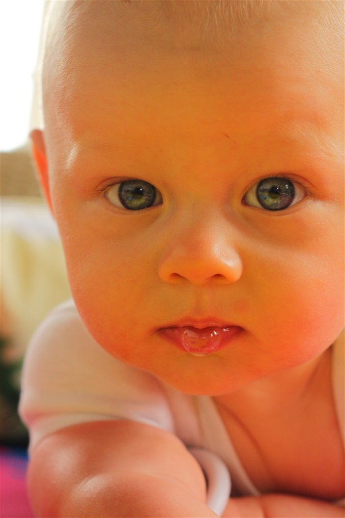 Måske moren her kommer til at tage et par billeder i "ny og næ" og han derfor "trænet" kigger yndigt mod linsen?