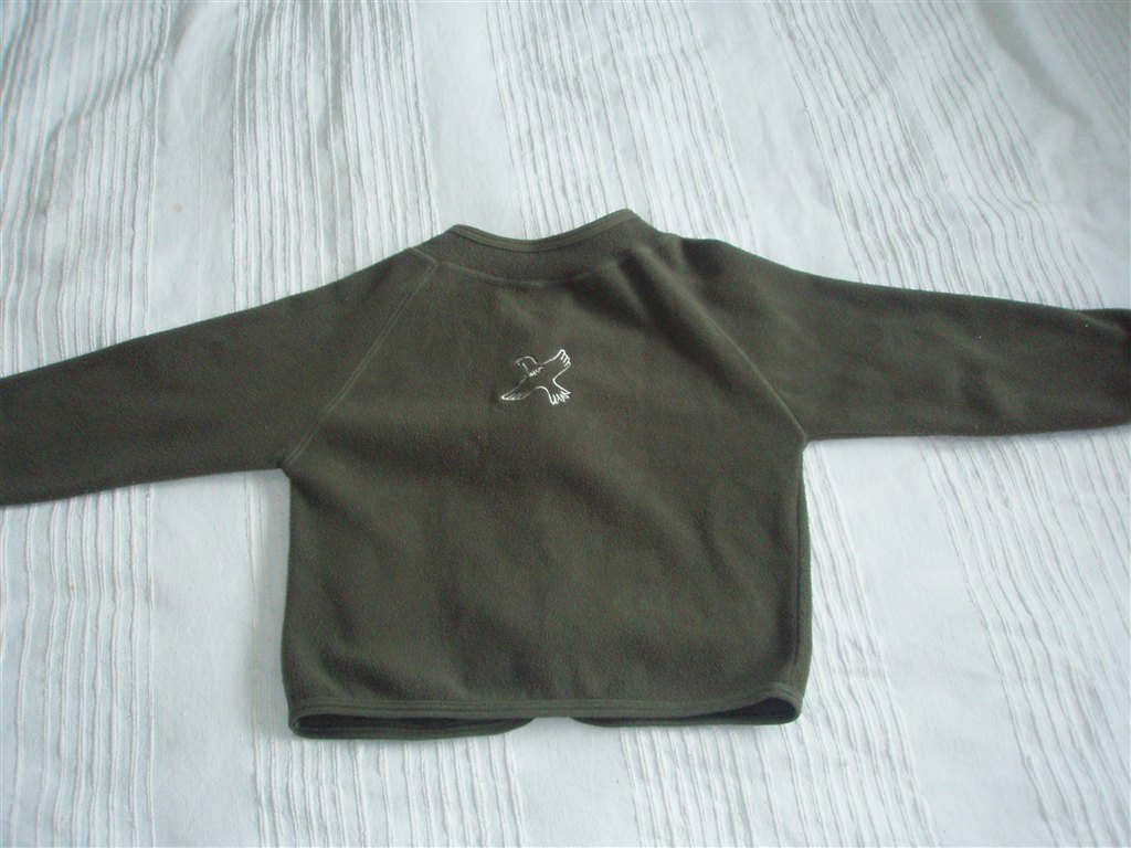 Brugt, men i OK stand. ingen huller eller pletter. Fleecen er lidt "træt" på ærmerne, men ikke noget man ser, når den er brug.