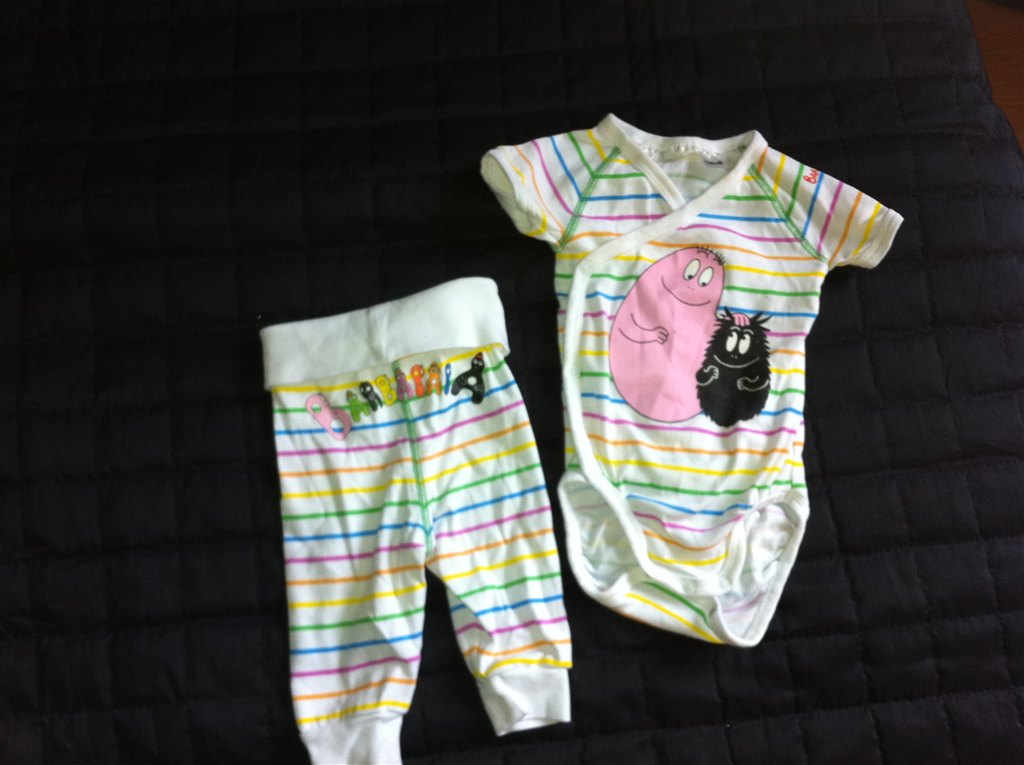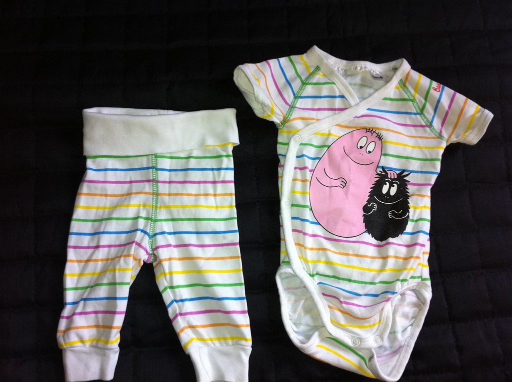 H&M sæt m. Barbapapa i hvid m. farvede striber // NSN