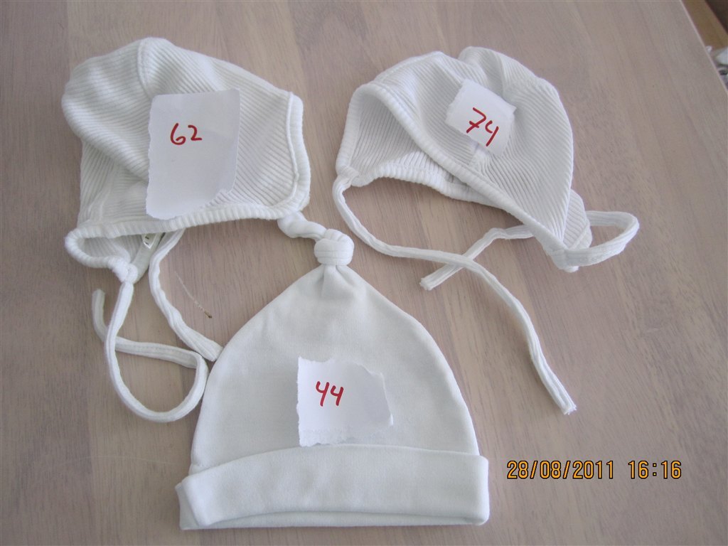 Hva betyder str 44 på den der hue? (på billedet med 3 huer?