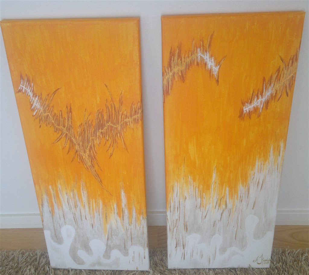 Har disse to, akrylmalerier på 30x60 der står og fylder herhjemme... Nogen som kunne være interesseret?