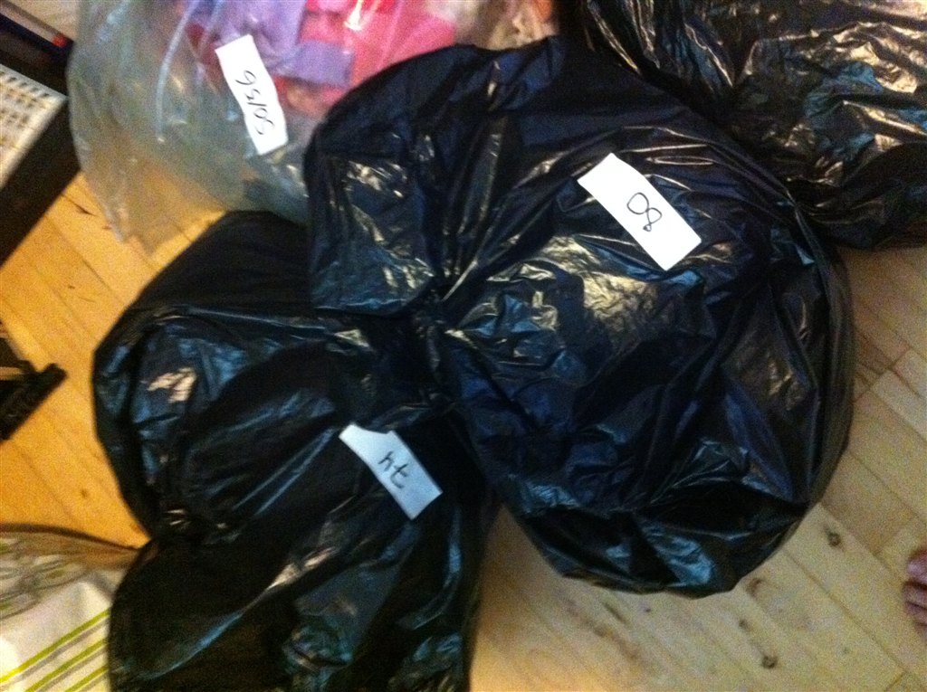 Prisen pr. sæk står til 200 kr. i første omgang, da det meste er mærketøj. Men smid et bud og så skal jeg forhøre mig ved hende