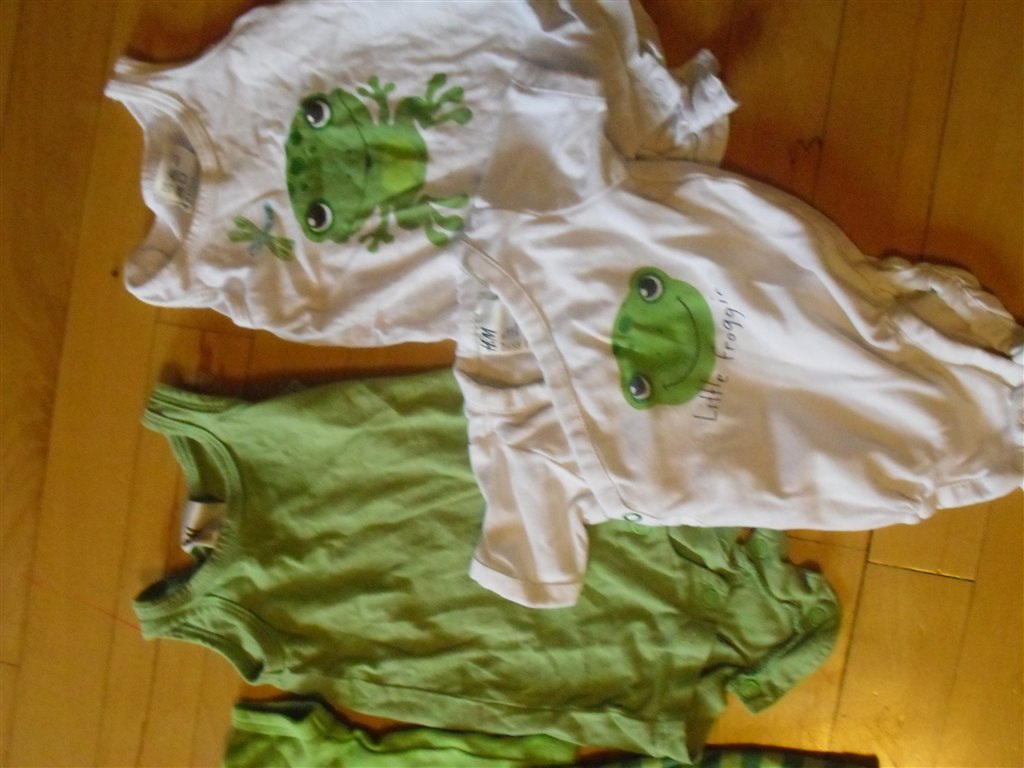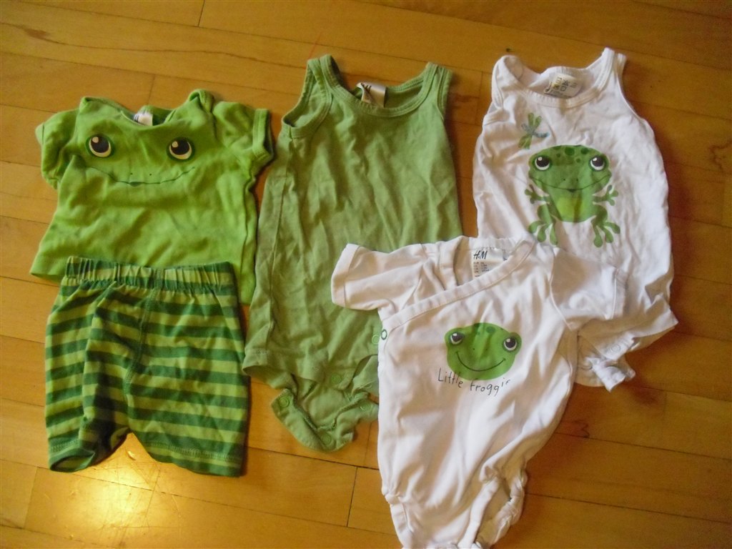 Jeg vil sælge et meget sødt "Little Froggie" sæt, bestående af 2 toppar, 1 kortærmet body, shorts, 1 t-shirts