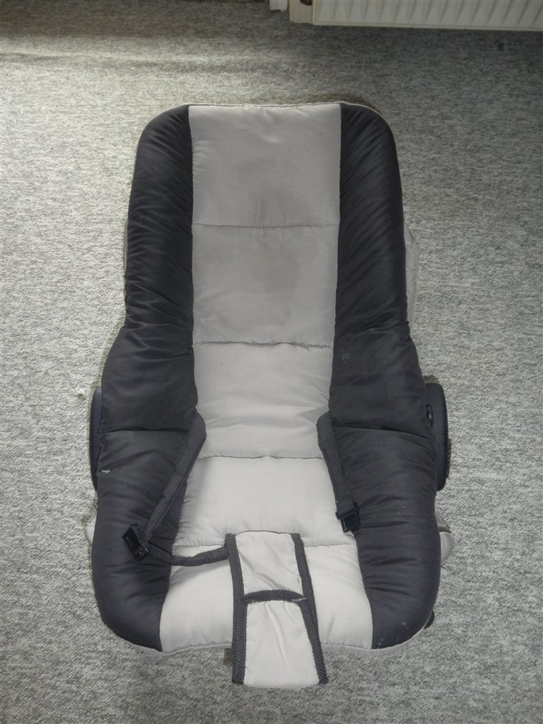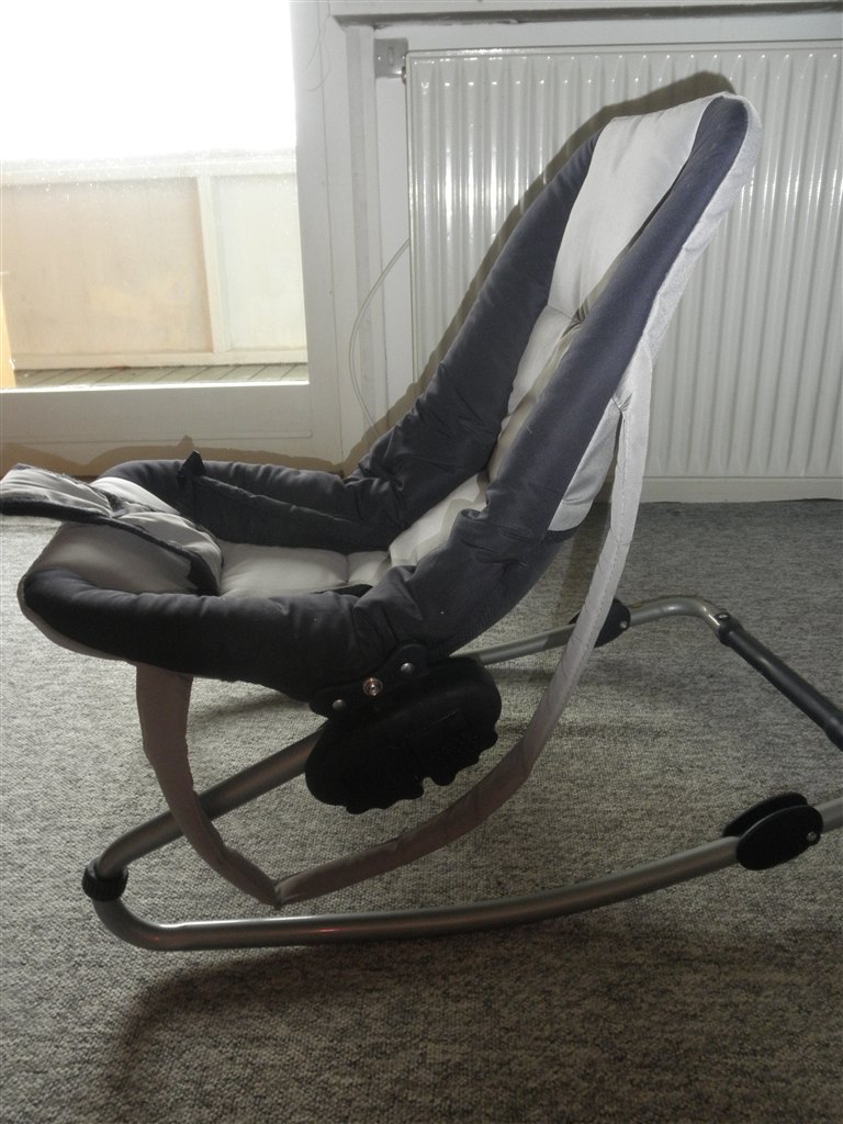 en skrå stol hvor du kan stille på hvor langt op barnet skal sidde blå/grå købt brugt (har en plet hvor hovedet skal være)