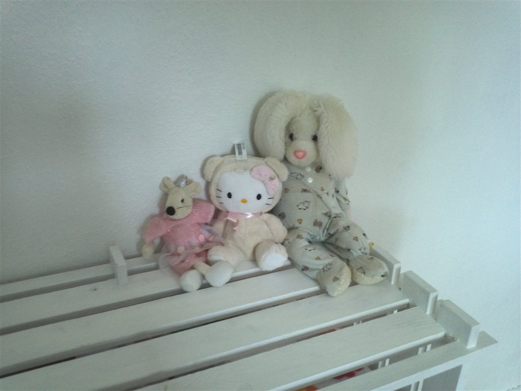 har også to kjoler liggende som jeg har haft på da jeg var helt lille + min ynglingsbamse, som evigt og altid har været ved min side, sidder inde på kommoden og venter :-) ( kaninen helt til højre )